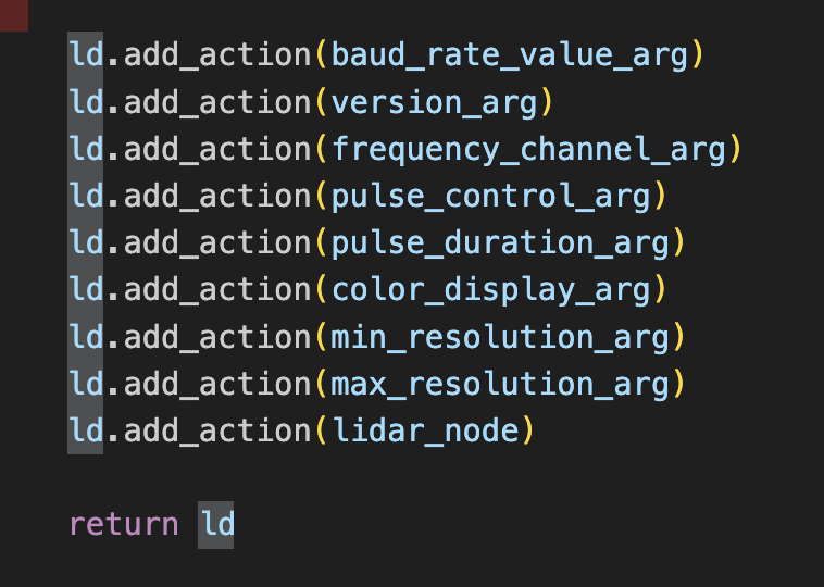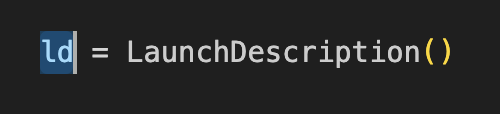 - 용도 : 런치 파일의 뼈대로 LaunchDescription은 실행할 모든 액션(노드 실행, 파라미터 설정 등)을 담는 객체